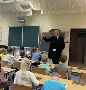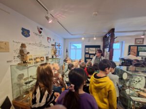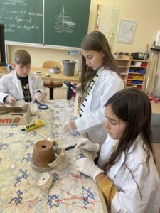Am Dienstag war Museumspädagoge Uwe Fischer vom Vogtlandmuseum wieder vor Ort- diesmal ging es für die Klassen 3 und 4 um Archäologie und das Ausgraben alter Schätze. Zeitgleich hatte Frau Waldmann vom Museum für die Klassen 1 und 2 alte Weihnachtsbräuche dabei und es wurden Karten mit alter Plauener Spitze gebastelt.